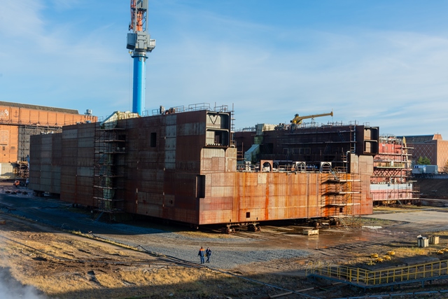 На предприятии ОСК Севмаш завершилось изготовление основной части кормового блока плавучего дока «Сухона» проекта 02122. Техническое сооружение строится для выполнения производственной программы предприятия. С его помощью будут осуществляться транспортные операции по переводу строящихся и ремонтируемых заказов из эллинга-2 на акваторию верфи.